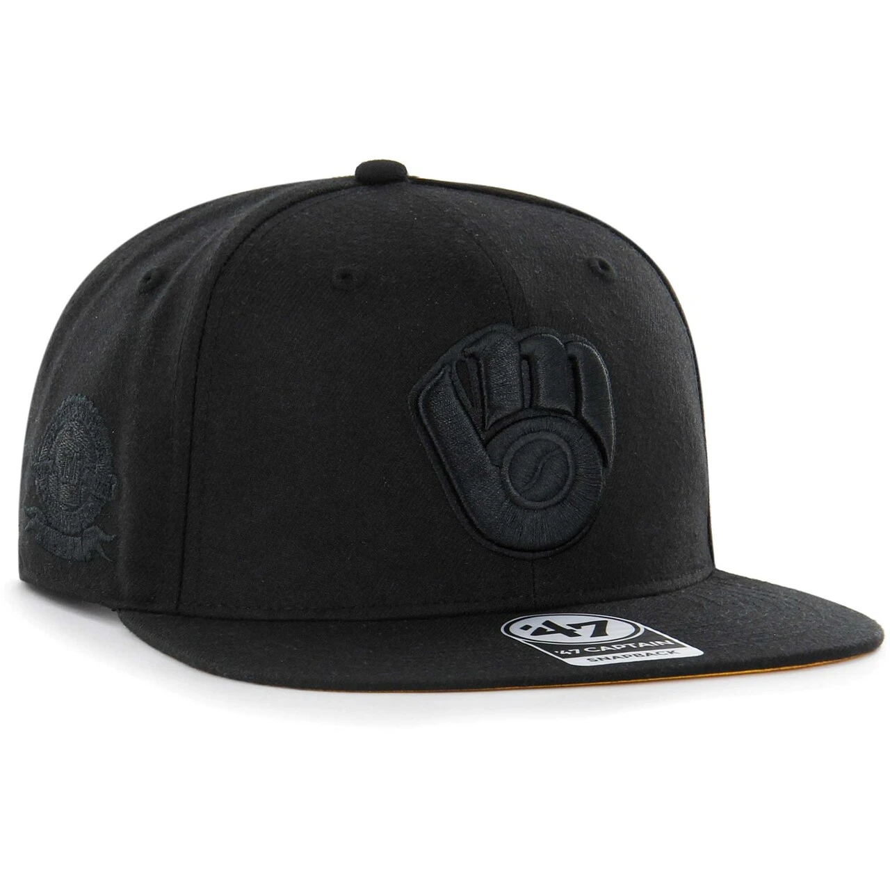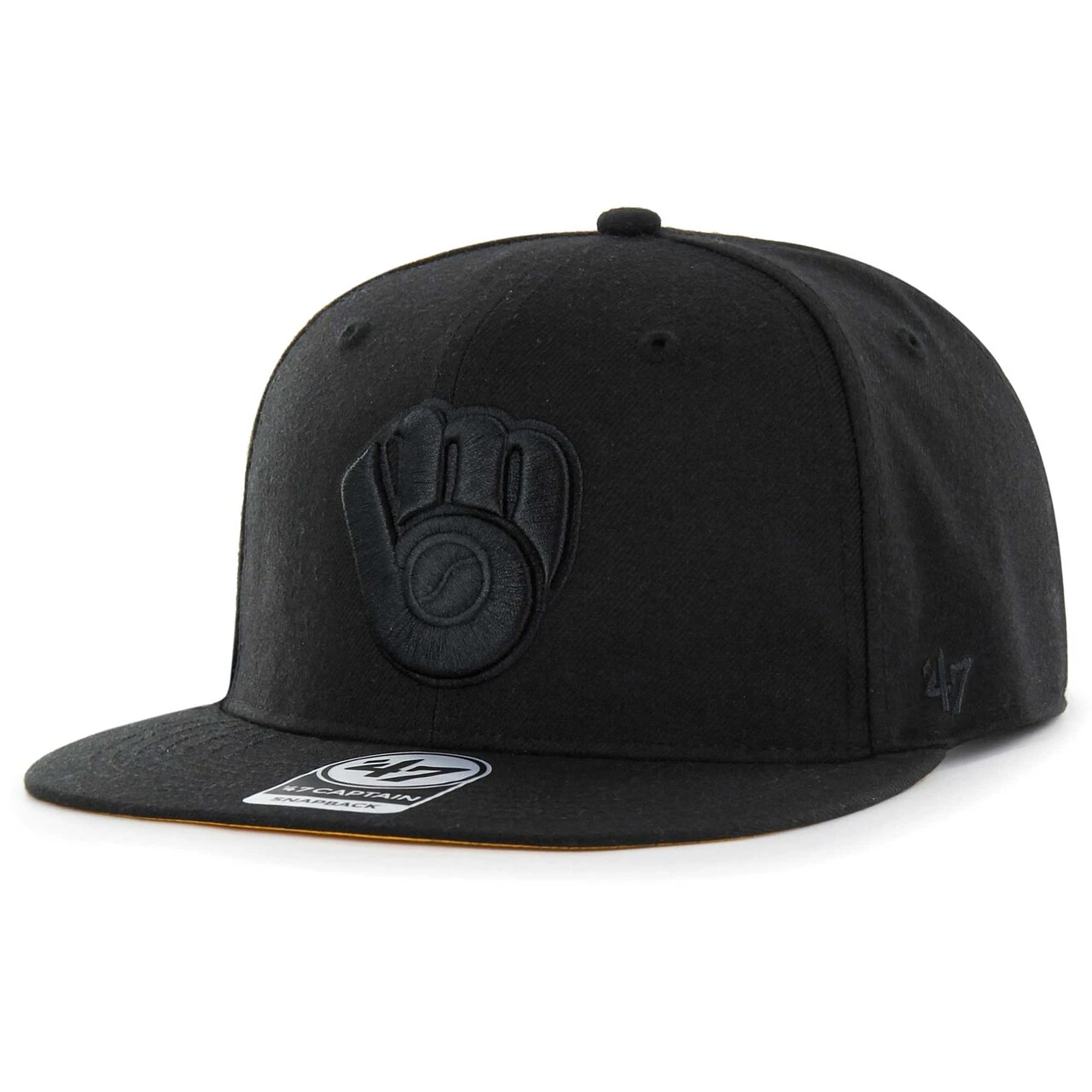 Men’s Milwaukee Brewers ’47 Black On Black Sure Shot Captain Snapback Hat