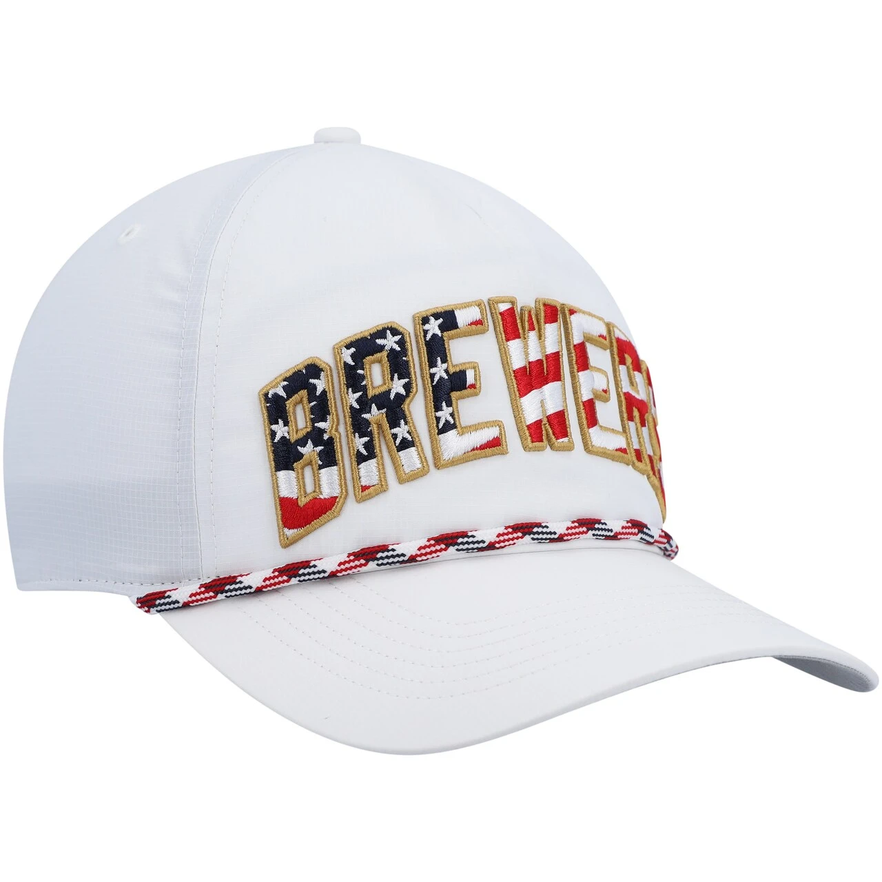 Express your patriotism and Milwaukee Brewers fandom with this Flag Flutter Hitch snapback hat from ’47. Its contrast-color undervisor and braided rope add a unique flair. A woven Milwaukee Brewers clip tag on the back completes the look.