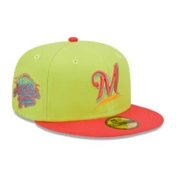 Stand out in Milwaukee Brewers style with this Cyber Highlighter 59FIFTY hat from New Era. It features striking team graphics over a red and green design. The blue undervisor gives this fitted Milwaukee Brewers hat an extra dash of detail.