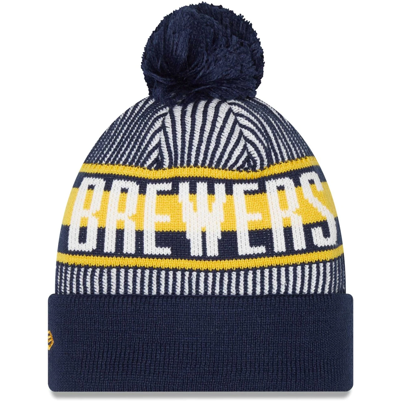 Men’s Milwaukee Brewers New Era Navy Striped Cuffed Knit Hat With Pom