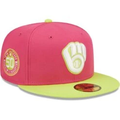 Be the first to review “Men’s Milwaukee Brewers New Era Pink 50th Anniversary Beetroot Cyber 59FIFTY Fitted Hat” Cancel reply