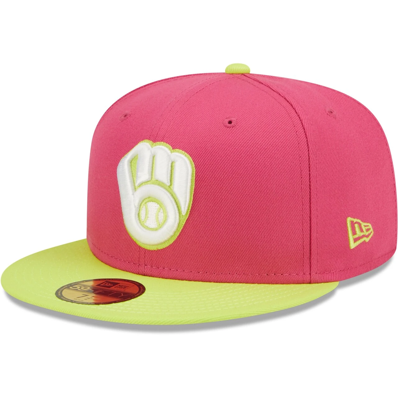 Men’s Milwaukee Brewers New Era Pink 50th Anniversary Beetroot Cyber 59FIFTY Fitted Hat