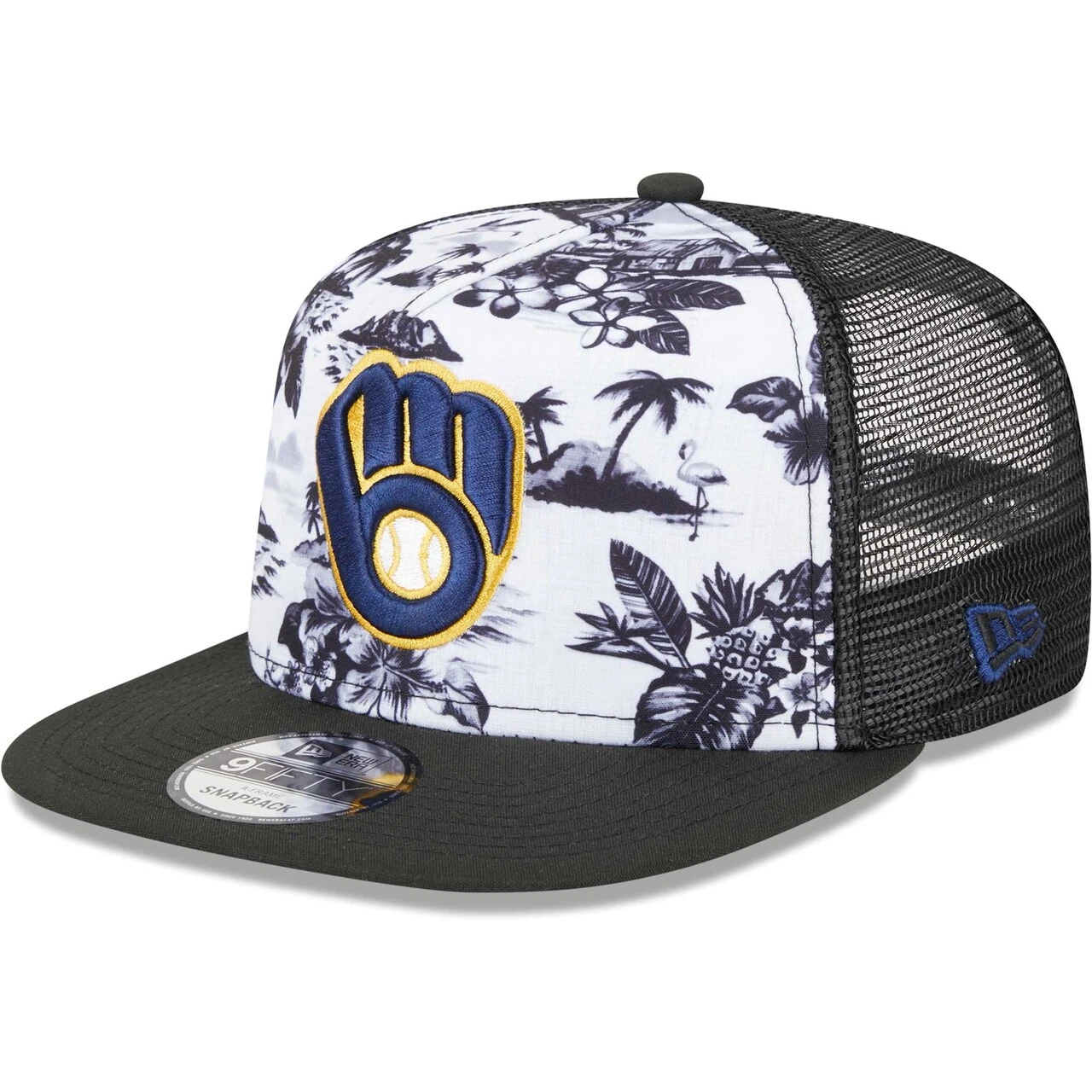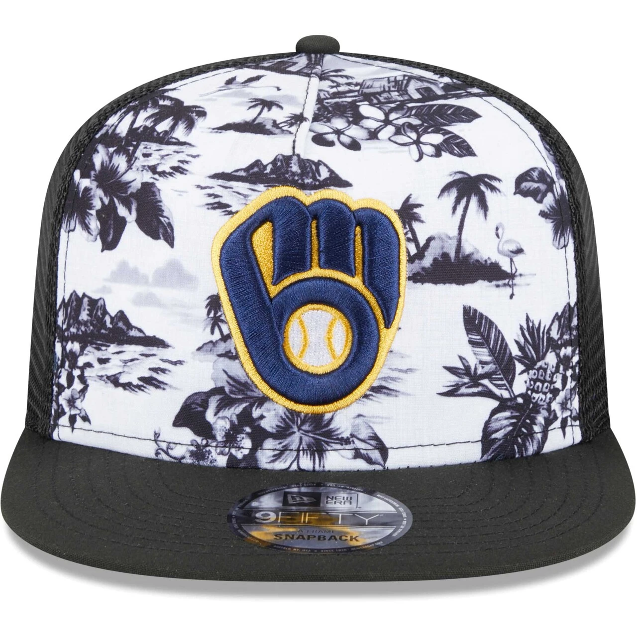 Men’s Milwaukee Brewers New Era White/Black Vacay 2.0 A-Frame Trucker 9FIFTY Snapback Hat