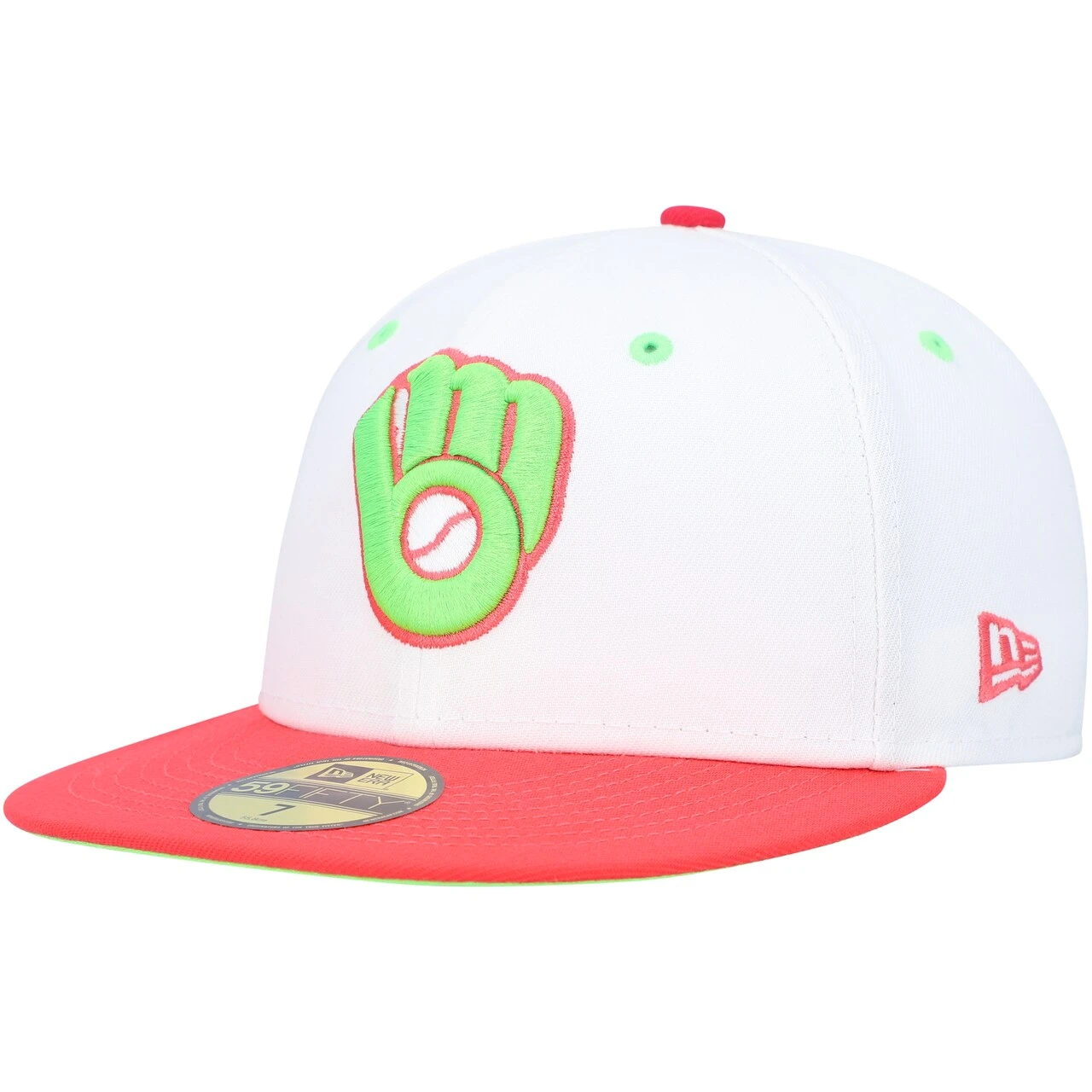 Men’s Milwaukee Brewers New Era White/Coral County Stadium Strawberry Lolli 59FIFTY Fitted Hat