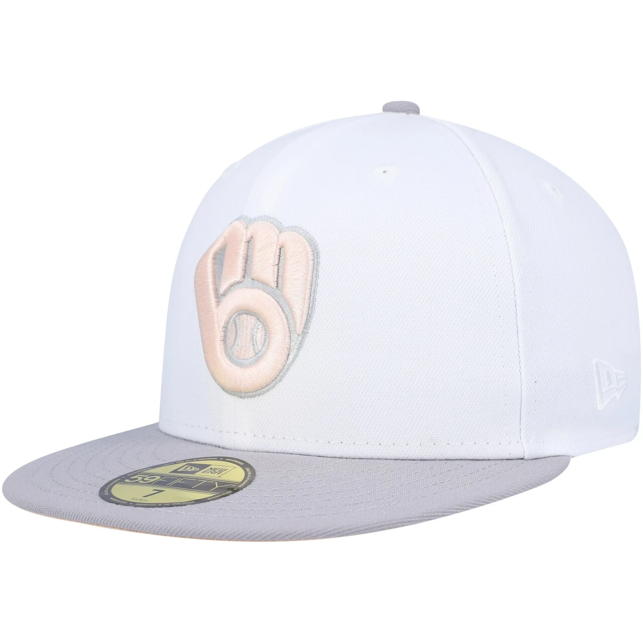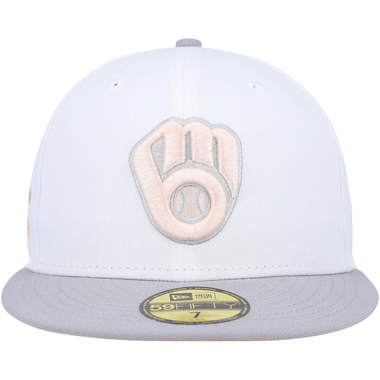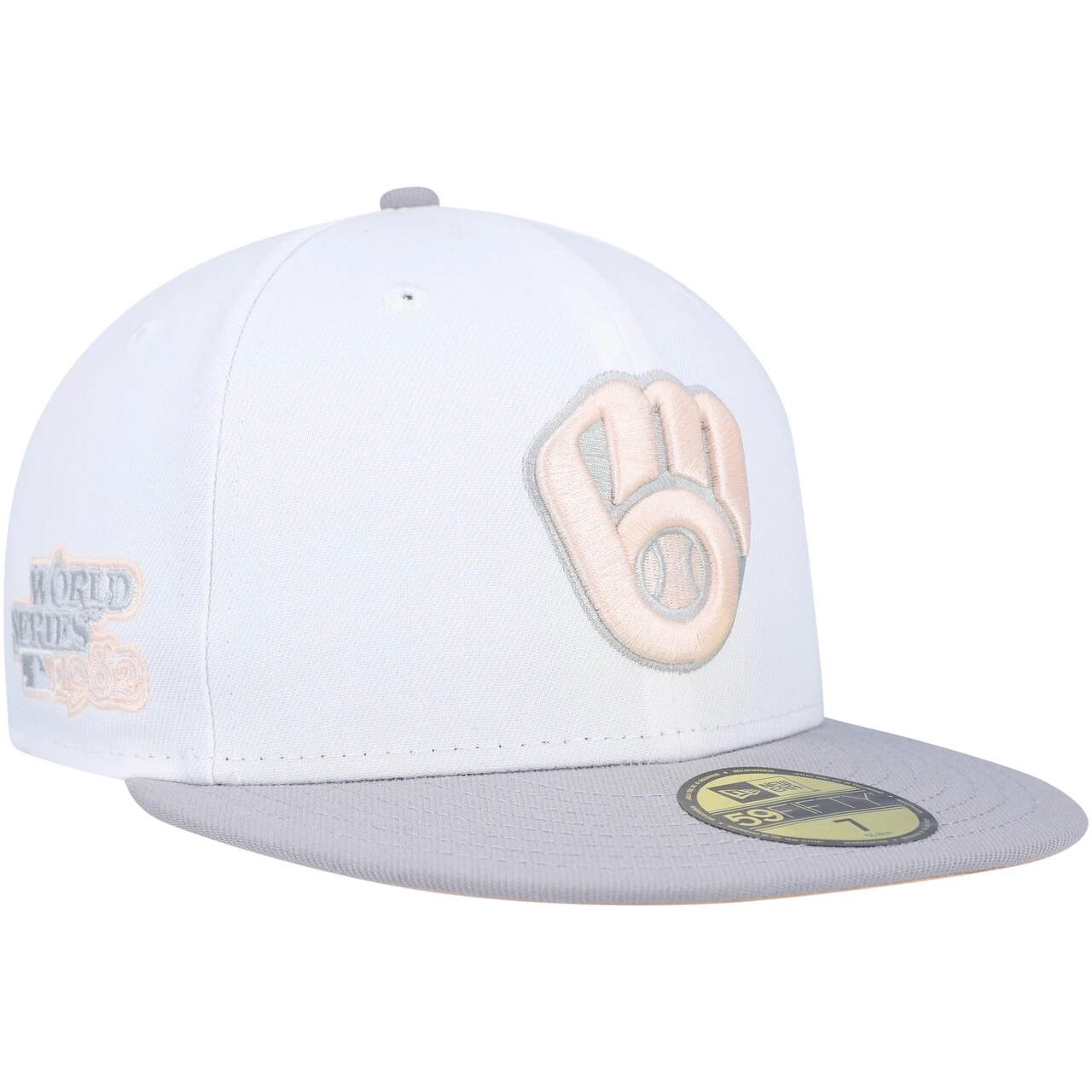 Men’s Milwaukee Brewers New Era White/Gray 1982 World Series Side Patch Peach Undervisor 59FIFTY Fitted Hat