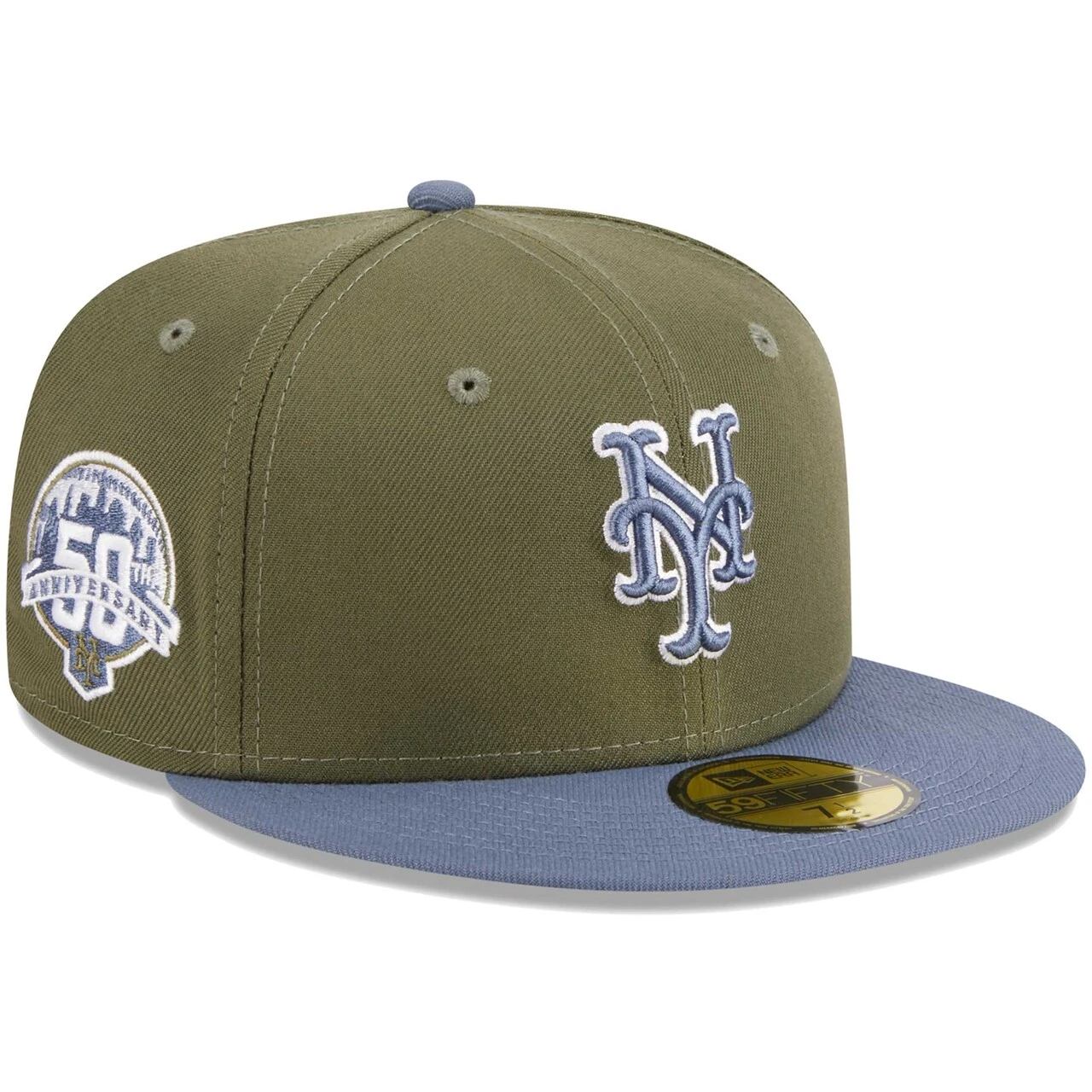 Showcase your unwavering New York Mets pride by wearing this 59FIFTY cap from New Era. This hat features a unique color scheme of olive and blue, with New York Mets graphics embroidered on the crown and side. The fitted construction will ensure you stay comfortable wherever you go.