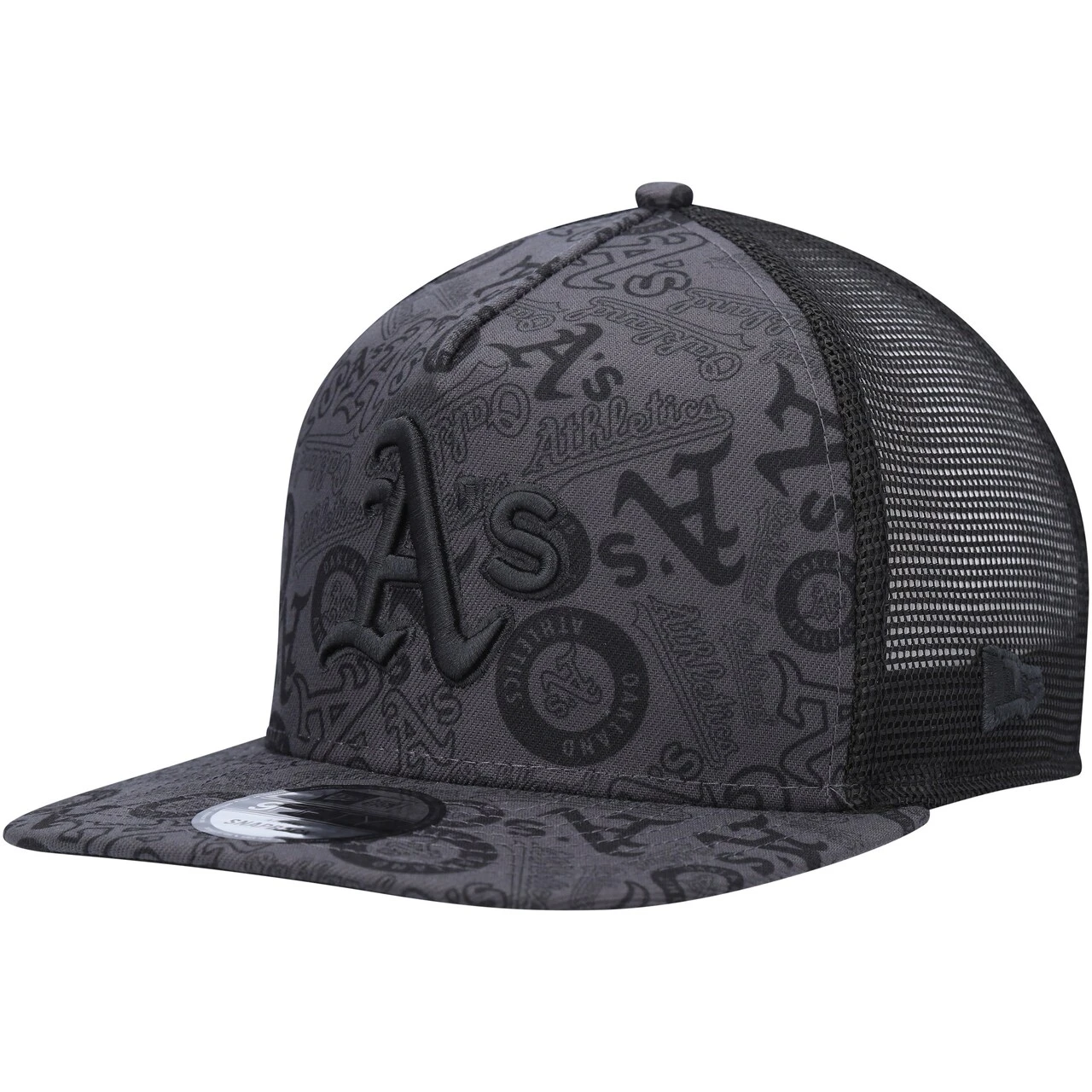 Men’s Oakland Athletics New Era Black Repeat A-Frame 9FIFTY Trucker Snapback Hat