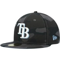 Showcase your love for the Tampa Bay Rays with this Dark Camo 59FIFTY fitted hat from New Era. With a shaded color scheme, the embroidered logo pops off the crown, establishing you as a passionate fan. The classic 59FIFTY construction also helps ensure this cap fits right in with your Tampa Bay Rays wardrobe.