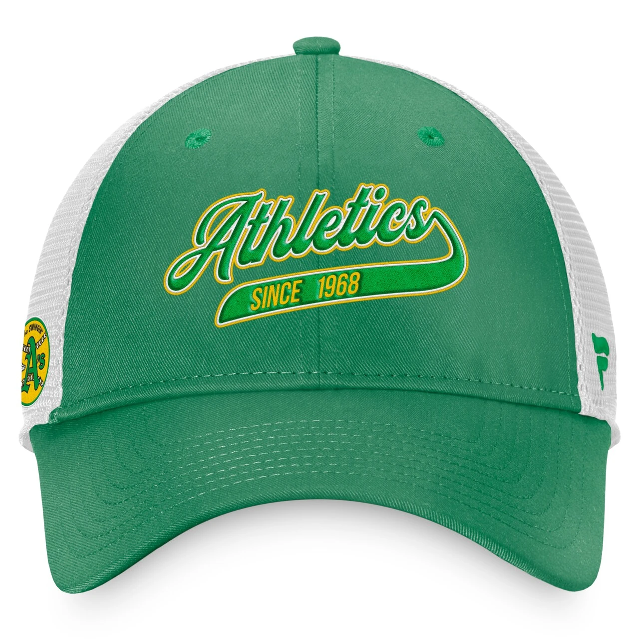 This Fanatics Branded True Classics Tailsweep Trucker hat is the perfect way to display your Oakland Athletics spirit. Signature Oakland Athletics colors and graphics put your fandom front and center. Plus, the snapback closure customizes to a comfy fit.